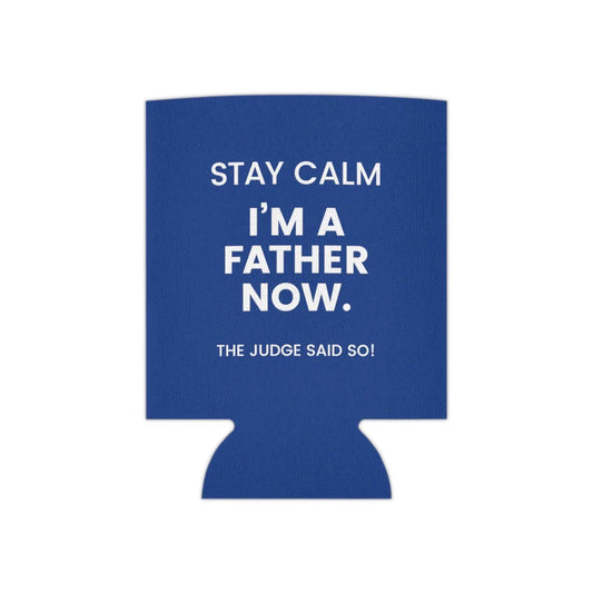 STAY CALM I'M A FATHER NOW - The Judge Said So! - Funny blue Can Cooler for dad