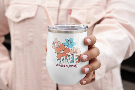 LOVE makes a family - beautiful floral wine tumbler