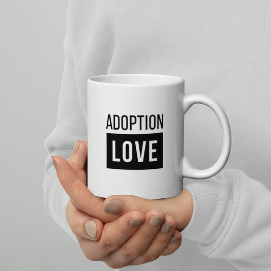 ADOPTION LOVE - black design on White glossy mug