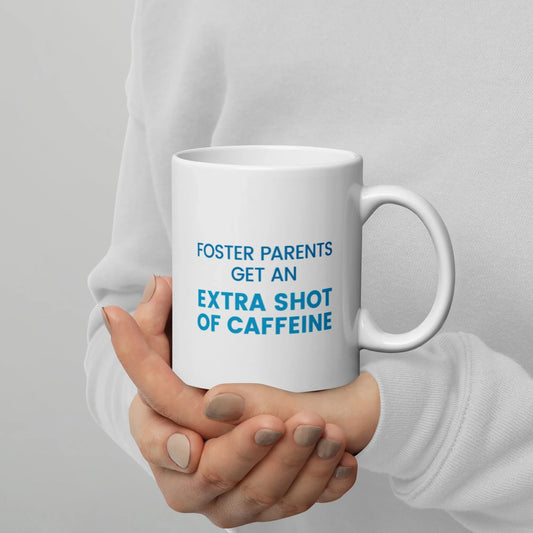 Foster Parents Get an EXTRA SHOT of caffeine - White glossy mug