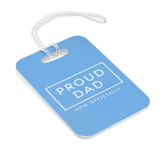 PROUD DAD - NOW OFFICIALLY - Blue Bag Tag for suitcase or travel bag