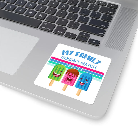MY FAMILY DOESN'T MATCH (I prefer it that way) - cute popsicle design on square stickers